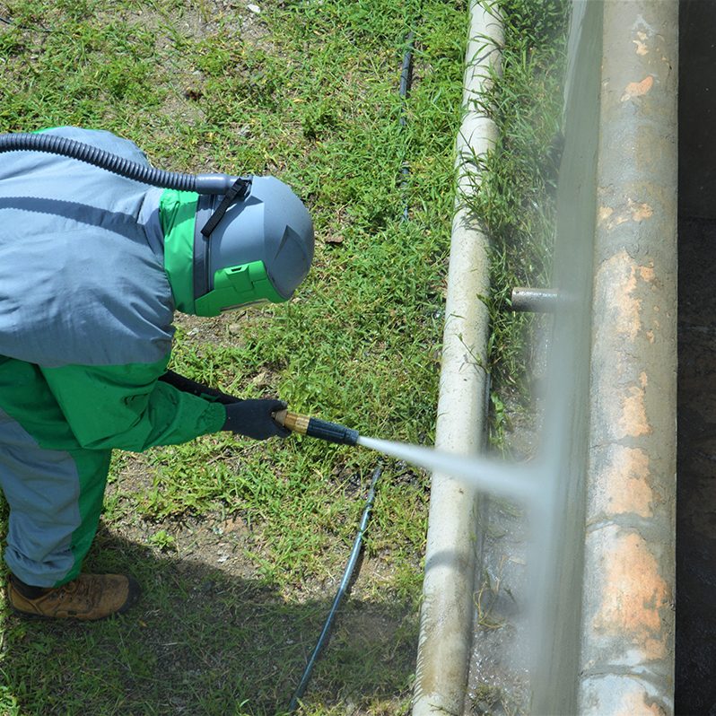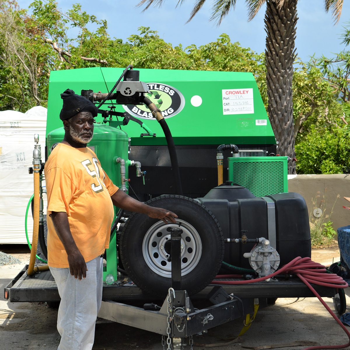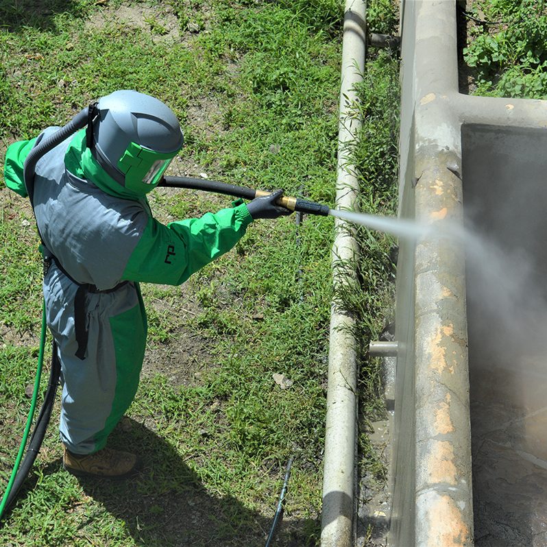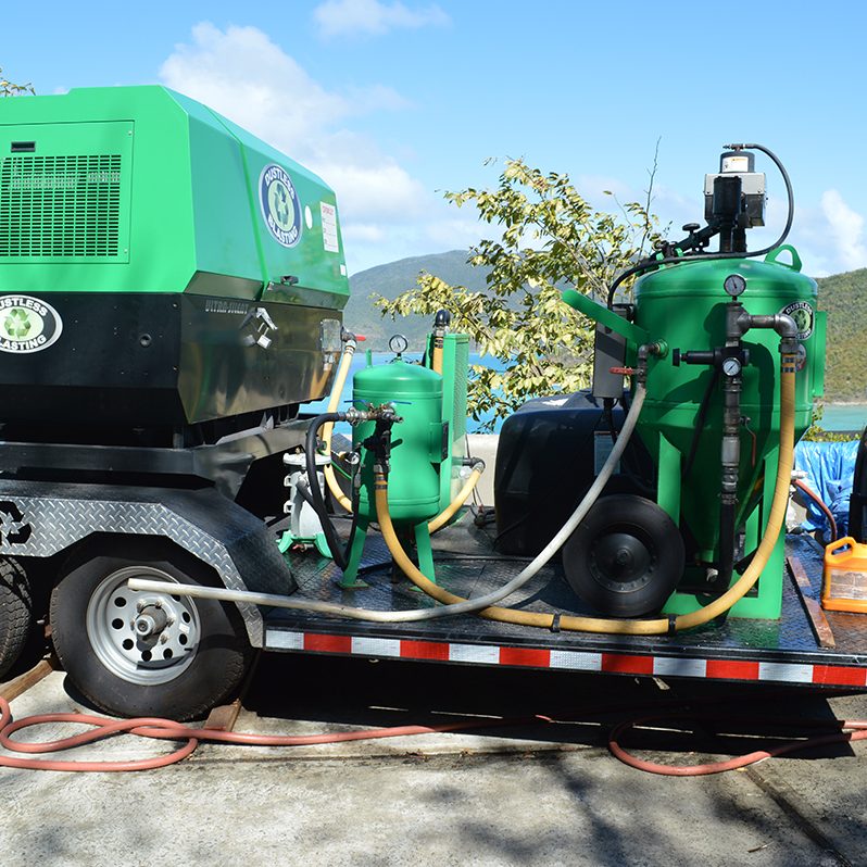The DB800 Compressor Ready Blaster is blasting equipment that is manufactured in the USA. It offers MMLJ’s Dustless Blasting system that works by mixing water and abrasive inside the blast tank. This technology eliminates dust by introducing water, which drastically increases the mass and energy the machine is putting out. This model, DB800 offers an 8 cubic foot capacity, which will give you approximately 90-minutes of run time using the #5 nozzle and 20 gallons of water per hour. This eco-friendly equipment is perfect for everything from small projects like blasting cars and trucks to large projects and even industrial jobs. Ace Marine Contractors provides this service for boats, vehicles, walls, and any equipment that needs blasting for maintenance or repainting.