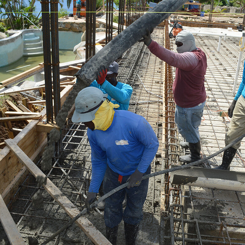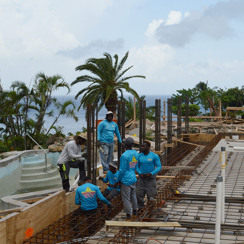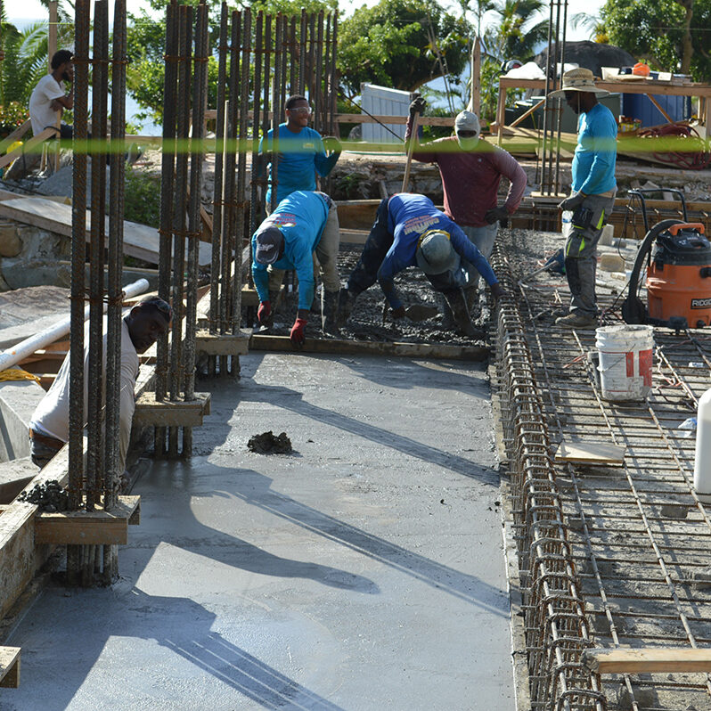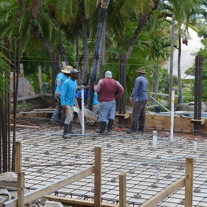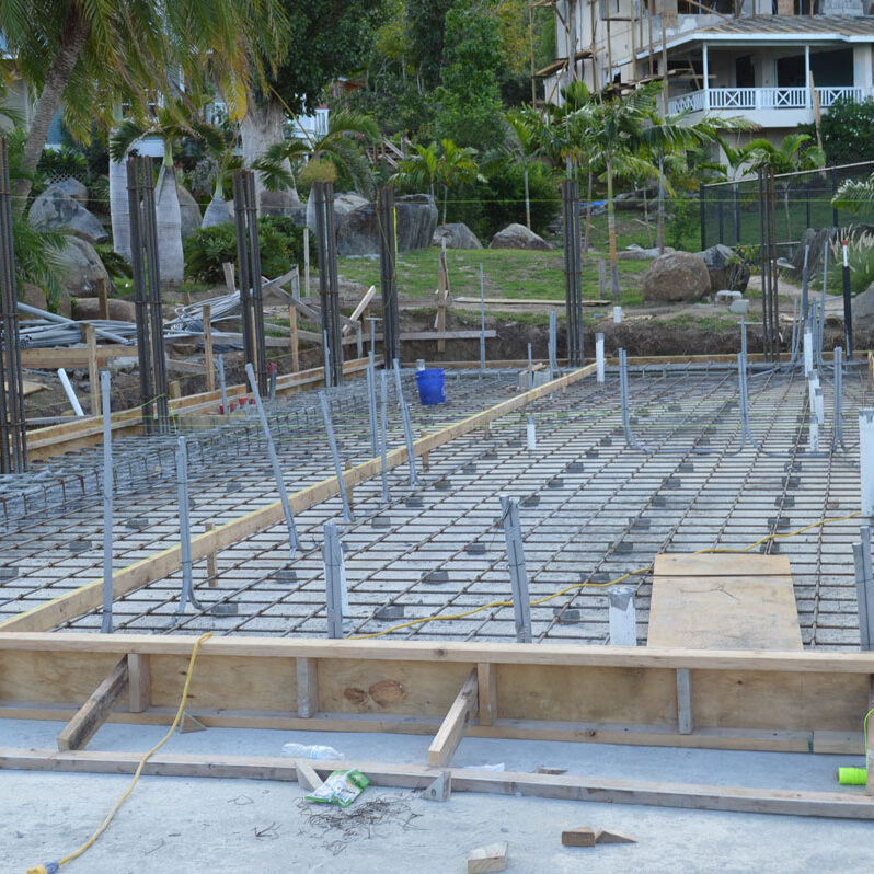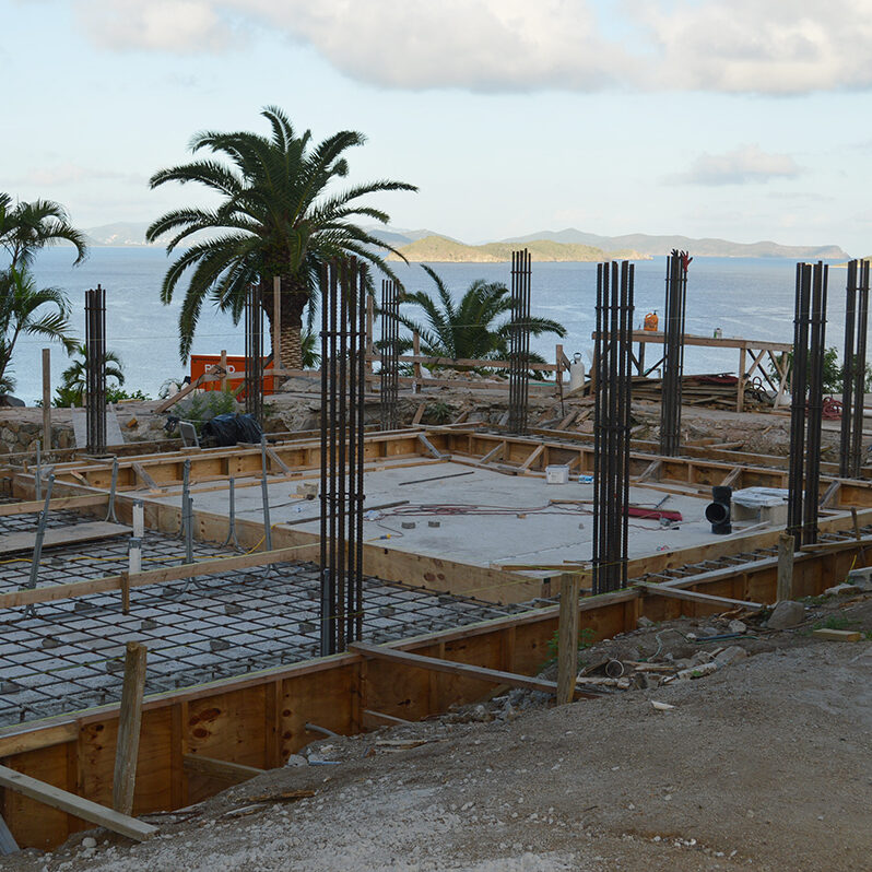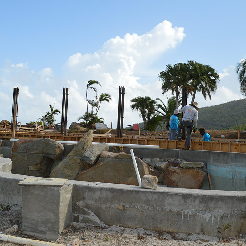Ace Marine Contractors Ltd. was contracted by ESK Development to do all concrete works for the new Sugarcane Restaurant at Nail Bay, Virgin Gorda. Project included excavating and installing the foundation and rough-ins, columns, concrete walls, and concrete beams for the roof.